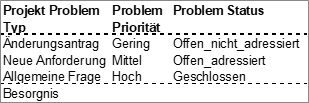 Das Problemprotokoll erfasst Projektprobleme und dokumentiert, wie diese verfolgt werden.